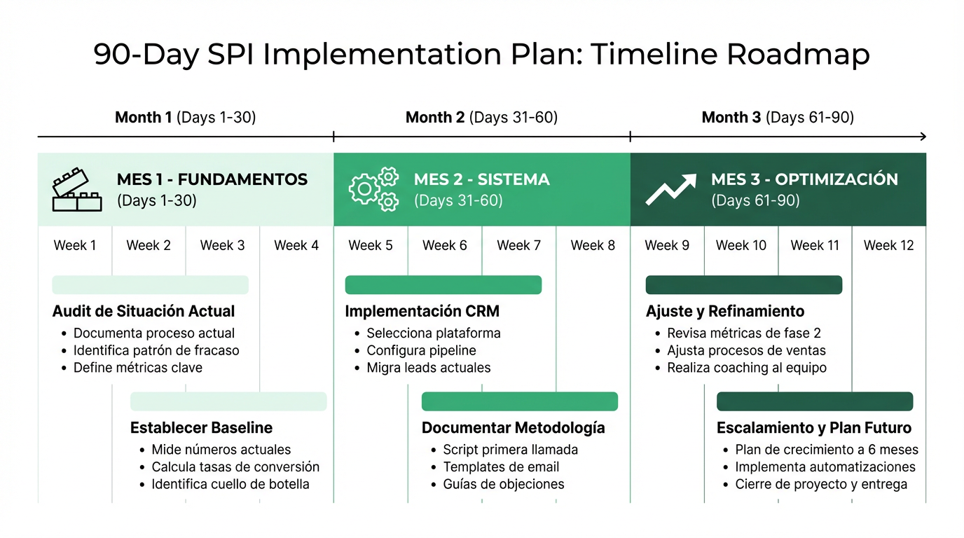Ejemplo real: Una consultoría de transformación digital personalizaba tanto cada proyecto que tardaban 6 meses en cerrar un cliente. Después de sistematizar su proceso con el modelo SPI, redujeron el ciclo a 45 días sin perder calidad.